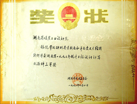 湖南省優(yōu)秀設(shè)計表揚金獎(1984)